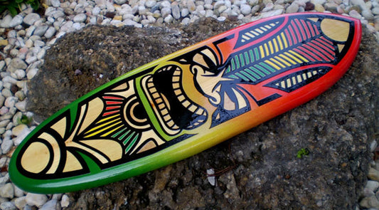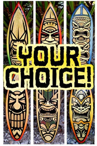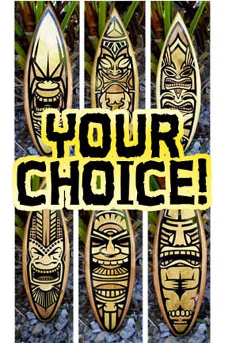 The Original Decosurf Tiki & Tribal Series Surfboard Artwork Decor. Luxury hand-crafted wood surfboard decoration and artwork. Available in 2-6 foot sizes. Fully customizable upon request.