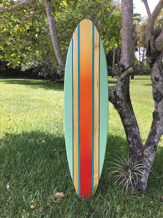 Green Tropical Vintage Style Solid Wood Surfboard Wall Art- Customizable- 2-6 foot Sizes Available- Beach House Decor, Office and Home Decor